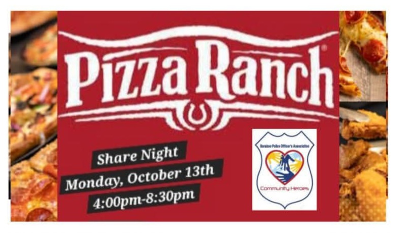 💥 Join us at Baraboo Pizza Ranch on Monday, October 13th from 4:00pm-8:30pm for a delicious dinner in support of our Holiday with a Hero program! The evening’s proceeds will benefit local children at our Holiday with a Hero event in December!🎄🎅🎁